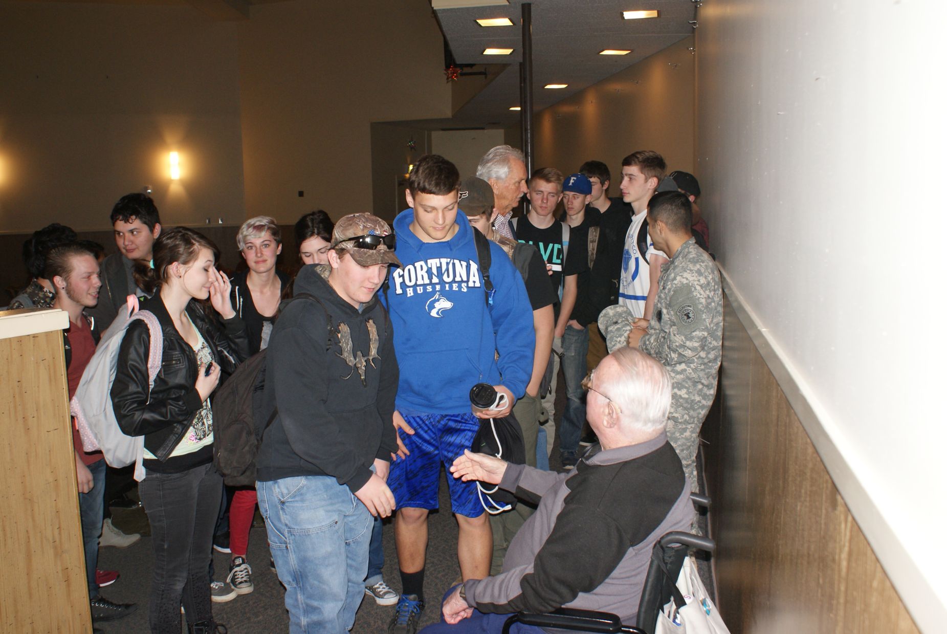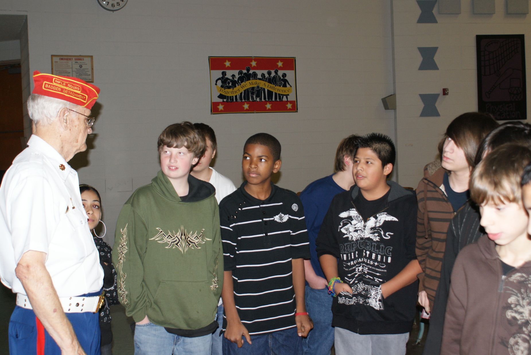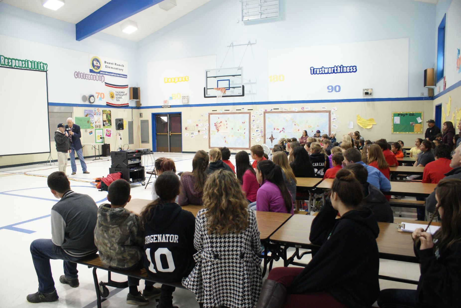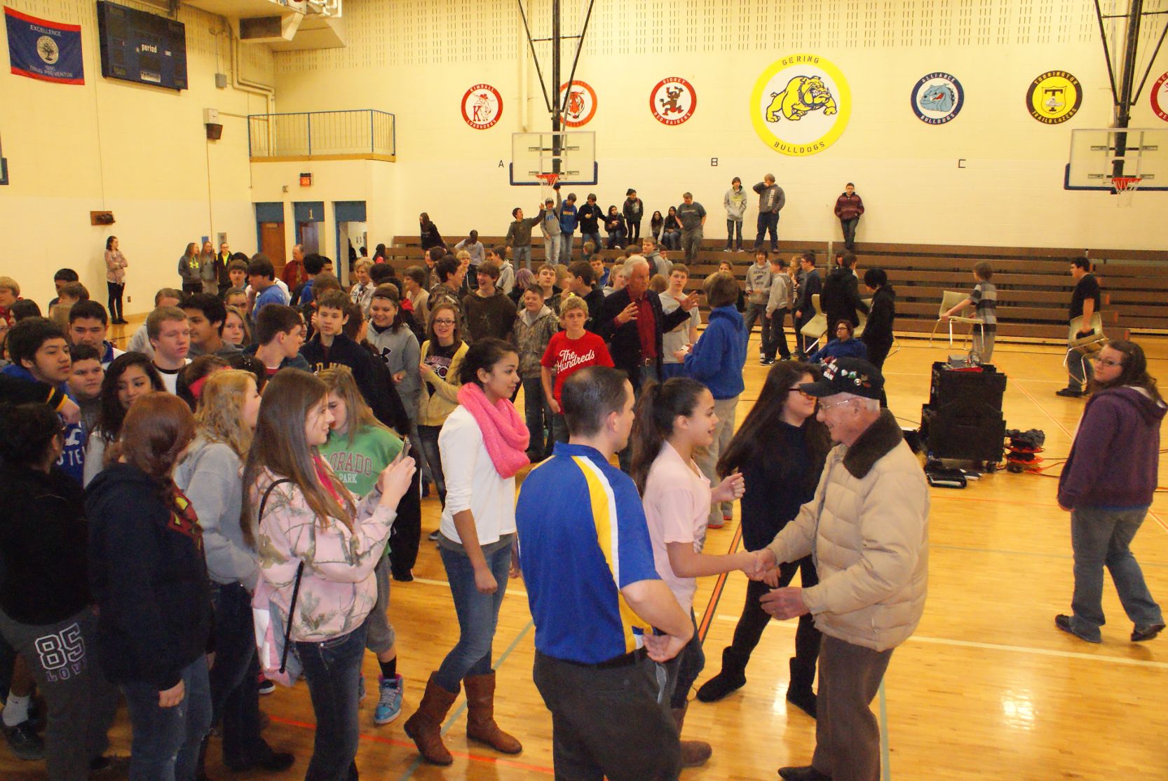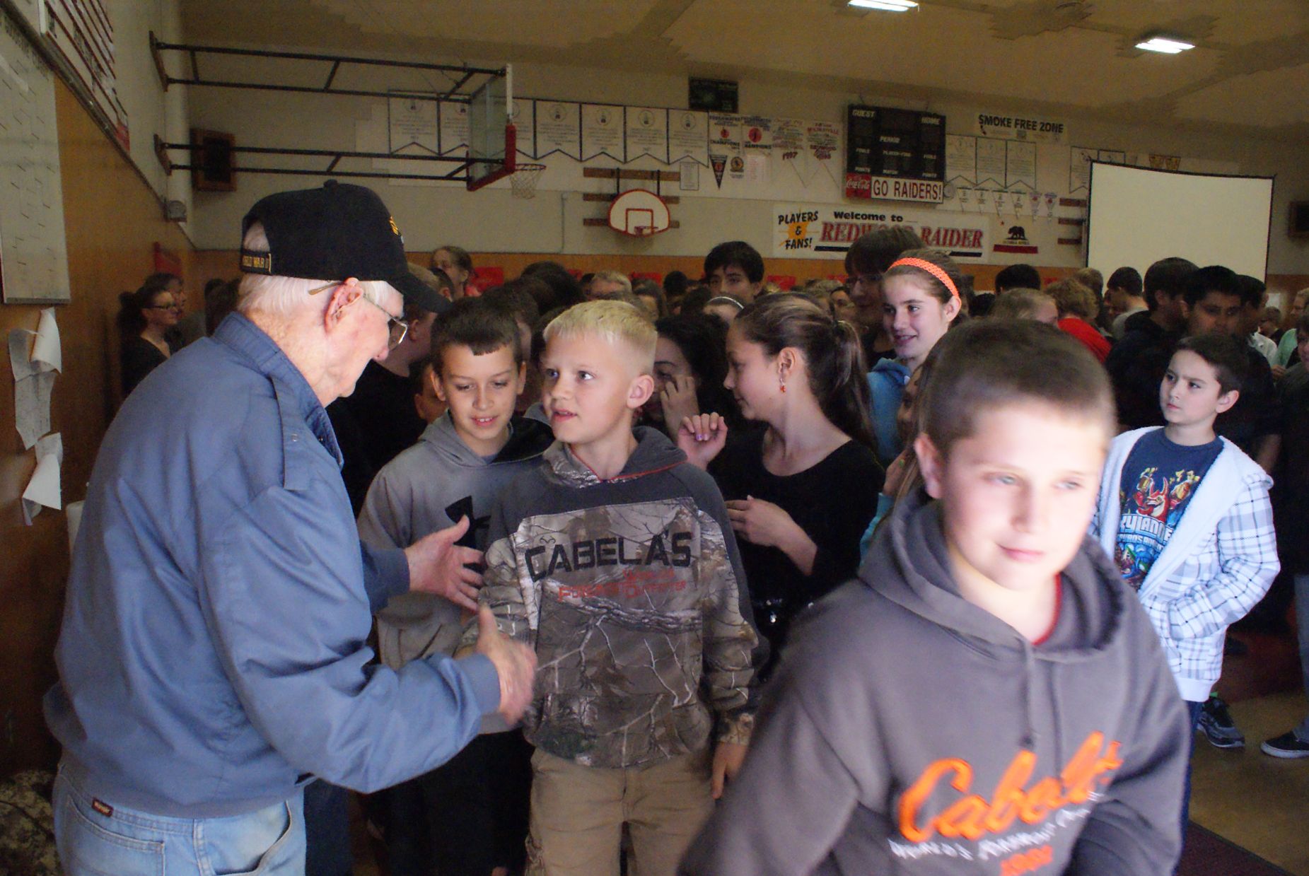 Assembly Pictures Paul Merriman, WWII - Iwo Jima Purple Heart recipient Paul brought his WWII memorabilia St Cecilia students honored to meet Paul Merriman Northern California Tour Assembly Pictures ![]() Fortuna High School with Stan Howe, WWII veteran Smith River School with Jack McCutcheon, WWII veteran K-8th grades Redwood Middle School with Jack McCutcheon, WWII veteran 6-8th grades ![]() Burnt Ranch School with Frank Garcia, WWII veteran 4-8th grades Hoopa High School with Bill Carpenter, Korean War veteran 9-12th grades Hayfork Middle School 4-8th grades Southern Trinity School 6-12th grades Veterans Day Assembly Pictures NEBRASKA TOUR Assembly pictures