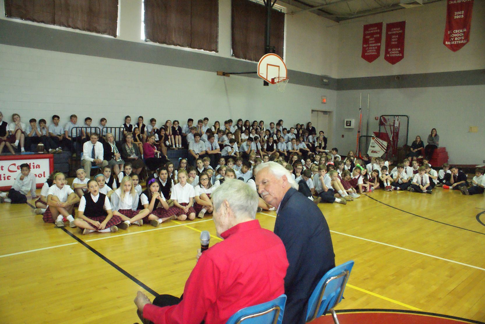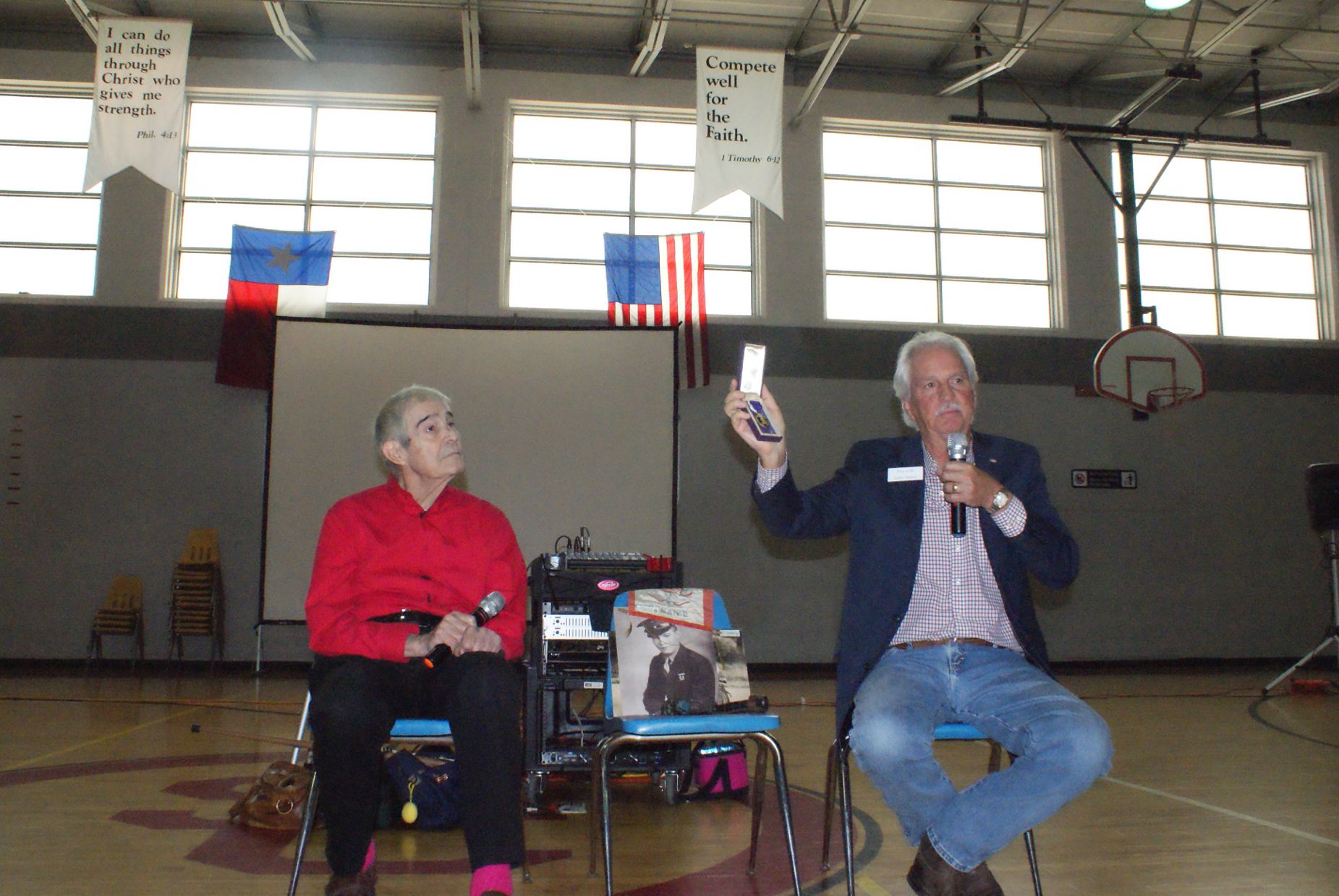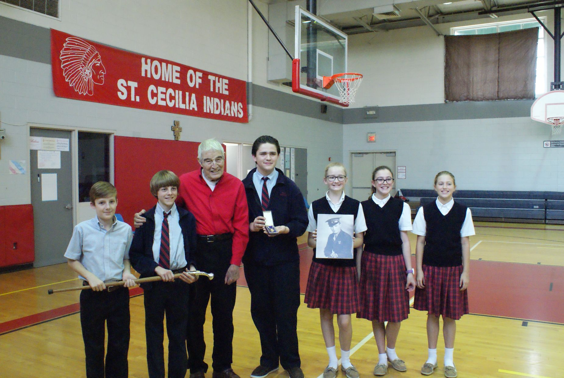 with Bob Lucas, WWII veteran ![]() Jackson Tooker, Bob Lucas & Landon Floyd then and now ![]() St. Cecilia Catholic School Veterans Day