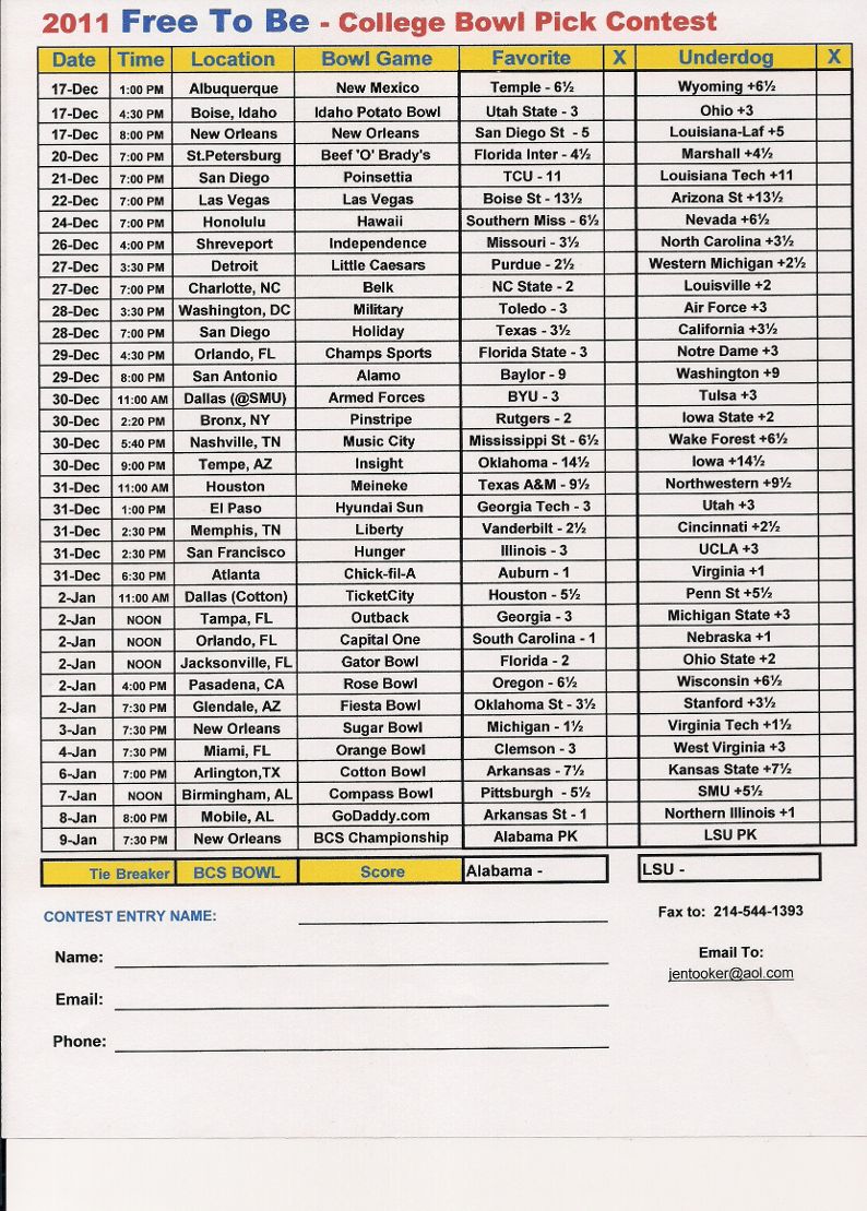 2011 Bowl Contest Form